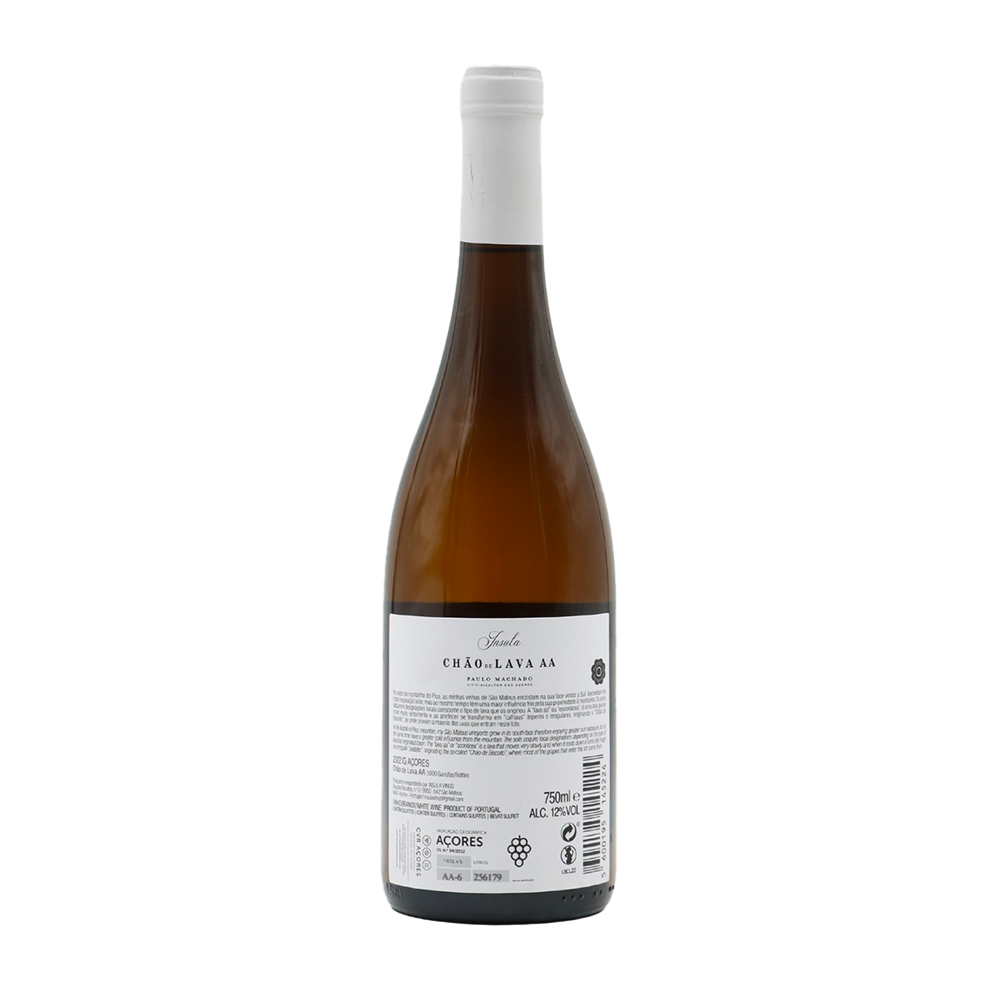 No sopé da montanha do Pico, as minhas vinhas de São Mateus encostam na sua face virada a Sul. Aproveitam de maior exposição solar , mas ao mesmo tempo têm maior influência fria pela sua proximidade à montanha. Estes solos adquirem designações locais consoante o tipo de lava que os originou. A “lava aa” ou “escoriácea”, característica de erupções vulcânicas do tipo efusivo tradicionalmente conhecida por “Chão de Biscoito”, de onde provém a maioria das uvas que entram neste lote. Vindima manual seletiva em caixas de 15kg, prensagem suave de cacho inteiro, decantação após 24h de sedimentação, para cubas de fermentação.