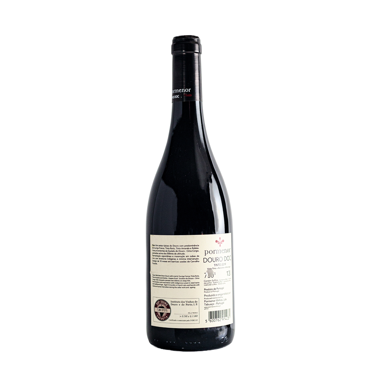 Produzido através de um blend de castas tipicas do Douro plantadas a uma altitude superior a 500m e provenientes de vinhas com idade superior a 60 anos. Uvas colhidas no tapete de escolha, fermentação totalmente feita em inox de forma parcial, desengace total em uma das cubas e desengace parcial na outra cuba. Maceração durante 4 semanas com leve remontagem, pouco extrativas. Estágio de 20 meses em barricas usadas de Carvalho Francês de 225 litros até ao engarrafamento. Como em todos os vinhos da Pormenor Vinhos, a intervenção humana é mínima durante o trabalho na adega anulando-se ao máximo a adição de produtos químicos.